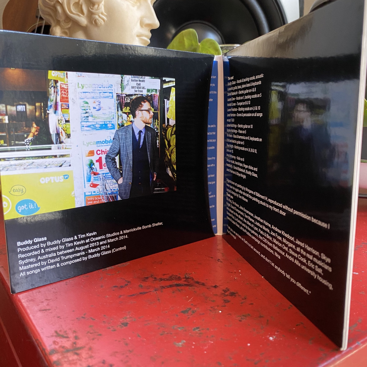 The result was a lengthy list of songs, ten of which you will find on this his debut, self-titled album. Road-tested in the bars of Lyon and recorded and mixed by Tim Kevin upon Buddy’s return to Sydney a year later, Buddy Glass highlights the musical and lyrical surge Buddy had while he was in Franco-captivity. “I came to Lyon to stick my fingers down my creative throat, and up came this album. I think I’ve thrown up worse things”, Buddy wrote to me on the back of a bar coaster.